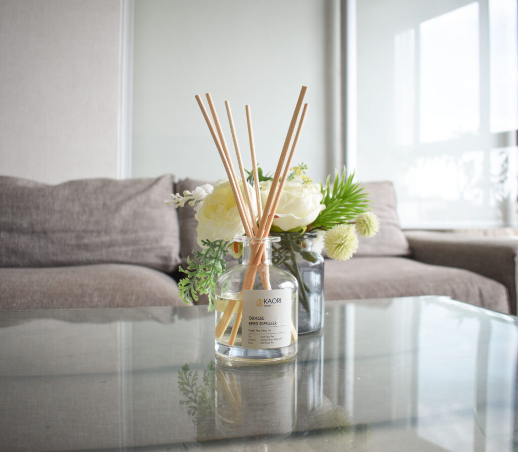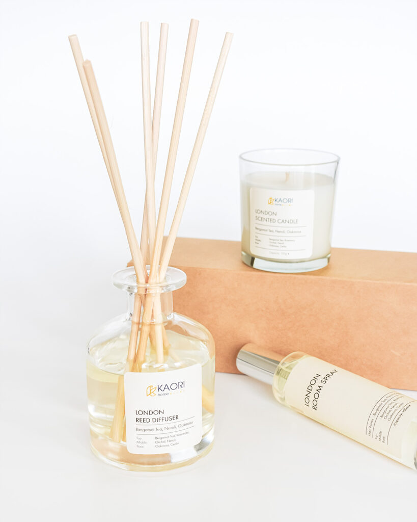 Photoshoot for Kaori Home, a brand offering home scents, diffusers, and reed sticks. The focus was on capturing a calm, refined atmosphere that reflects the brand’s minimalist and soothing aesthetic.
